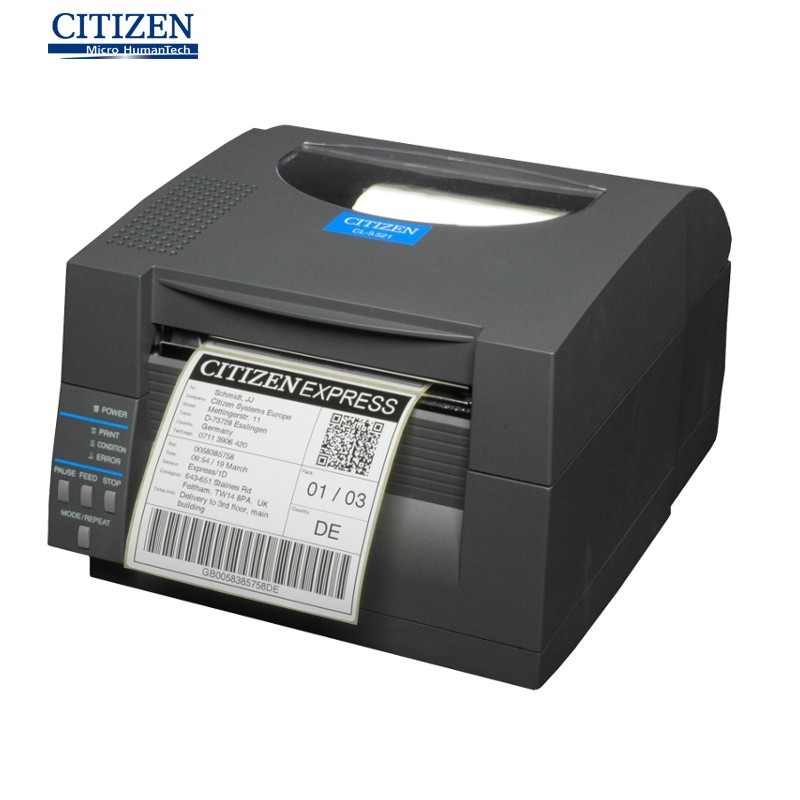 Termotiskárna CITIZEN CL-S521 umožňuje tisknout na termoetikety čárové kódy (1D, 2D), texty, grafické objekty a obrázky. Tyto tiskárny tisknou vždy černě, pokud zákazník požaduje barevný potisk je možné dodat předtištěné etikety a dotiskávat pouze proměnné údaje. Zakládání materiálu je velmi snadné díky tiskové hlavě umístěné ve výklopnem modulu, který se otevírá do strany. Součastí balení tiskárny je český manuál, software pro tvorbu a tisk etiket Bartender Ultralite, ovladač pro Windows, Linux a MAC (vše v češtině). Tiskárna je vybavena emulací jazyka Datamax a Zebra.